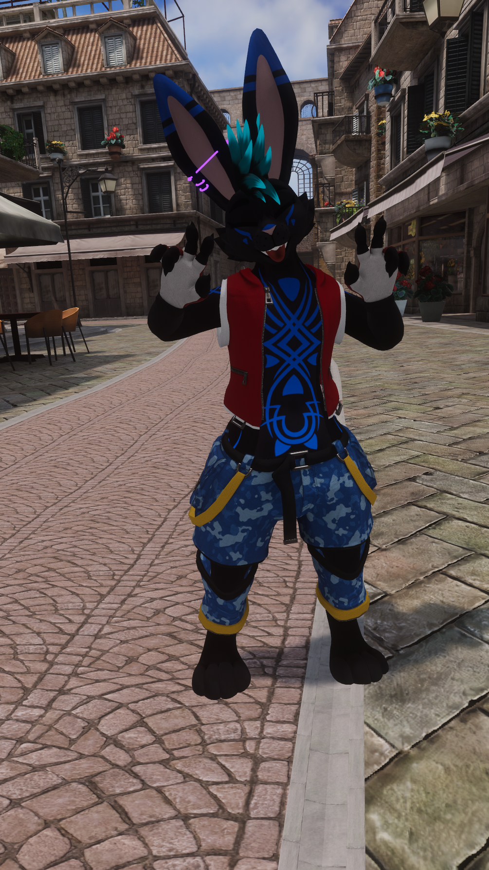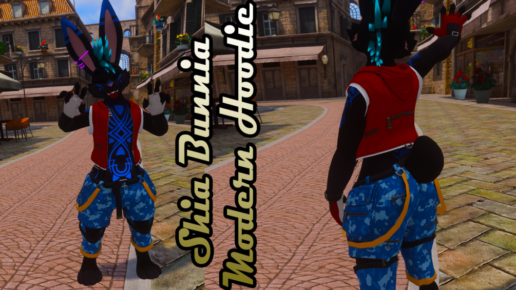 Clothes for the Shia Bunnia Avatar. This includes finger-less gloves, shirt, open hoodie, and pants. Each with their own toggles.